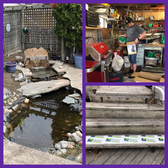 big girl pants, blessed, family, garage, garden, moments, nature, pond, repair, son-in-law, steps, tools, vanishing, waterfall, widow