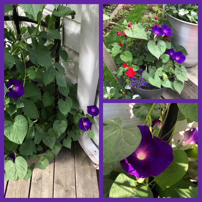 my plan was to put morning glories all around the garden and that has worked out nicely…