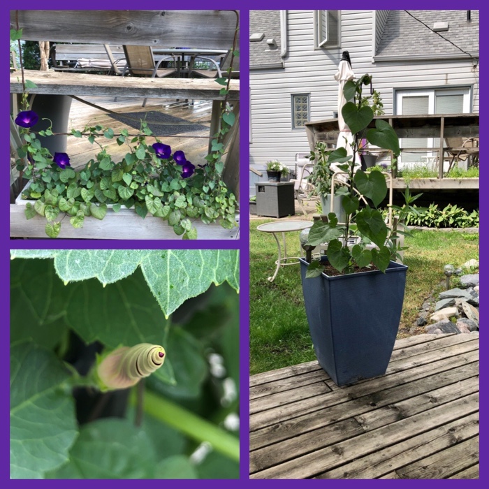 I am most hoping for more in the large pot on the deck with the tall obelisk in it… I thought they would grow up it and make a beautiful showy display…
