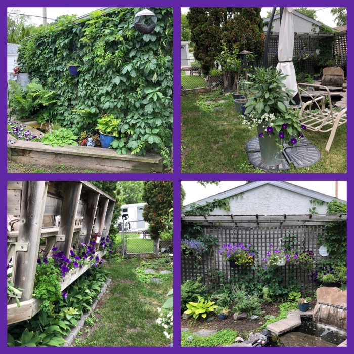 the side/vegetable garden is very happy… the peas and cucumbers in the new planter are especially happy… they are taller than me…