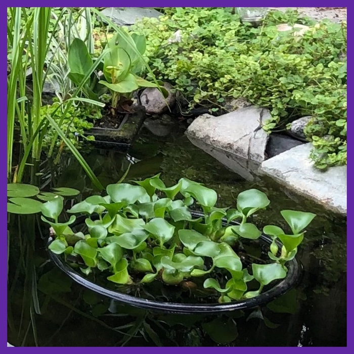 I made a hoop for the water hyacinth (handyperson me!) and it is filling quickly…