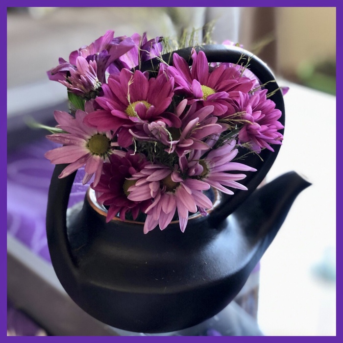 used a cute teapot and a small glass for the next life of the bouquet…