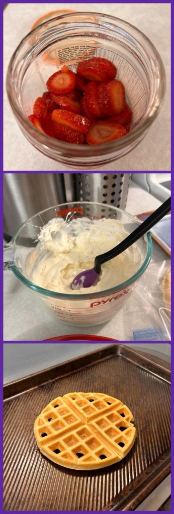 in the morning, the cream was whipped with the immersion blender and one waffle went onto a baking tray to warm in the oven…