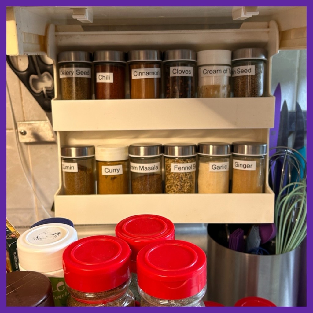 then, we got out the label maker, which I am still learning how to use, and made labels as we filled the jars that would fit in the two spice racks…