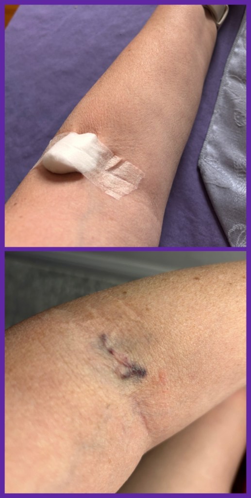 the Dynacare technician arrived and took some blood for my next doctor’s appointment… they had trouble getting into the vein and told me I would have a bruise…