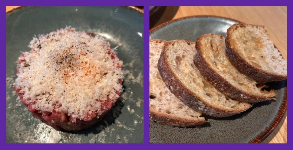 beef tartare, big girl pants, birthday eve dinner, blessed, brioche, delicious, dinner, family, food, Gather Craft Kitchen and Bar, happy, moments, new menu, The Leaf, widow
