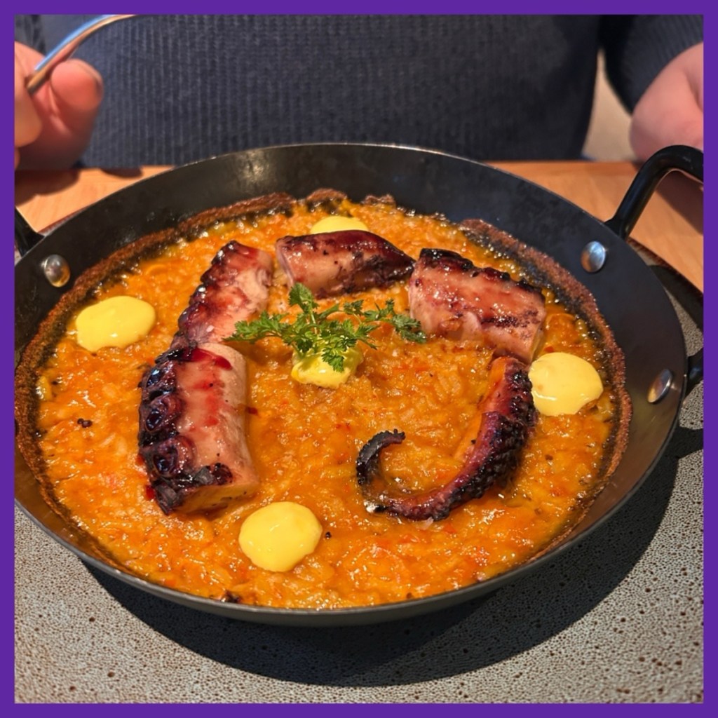 my grandson had the grilled octopus, with paella rice, saffron aioli, and chervil, and noted how nicely it was cooked…