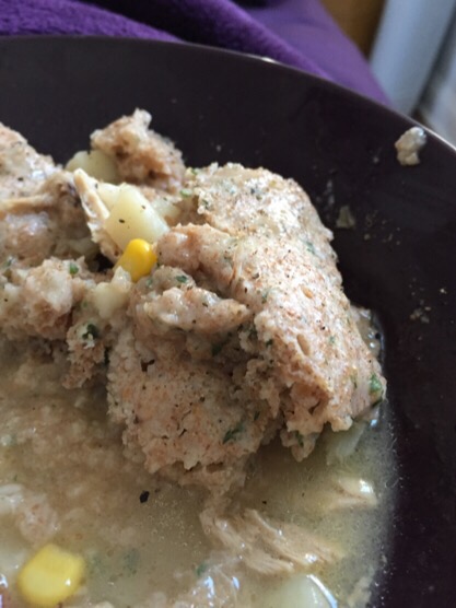 for supper I made chicken and dumplings made with whole wheat flour… decided to divide the recipe in half, which I did for the dry ingredients… but then I used the liquid measurement for the whole recipe… came out a little interesting… and very light, lol…