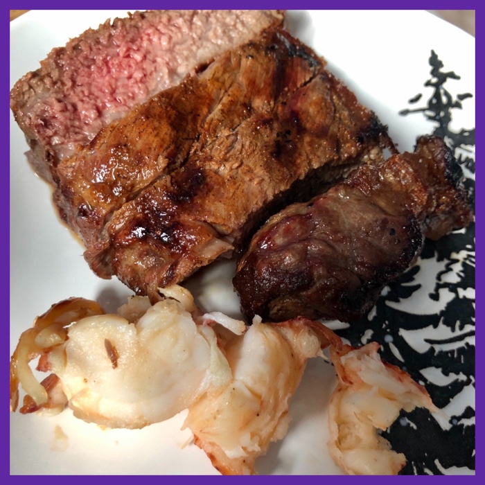 I had planned to barbecue steak and lobster for my birthday supper… unfortunately, it was cold and snowy, so I ordered in…