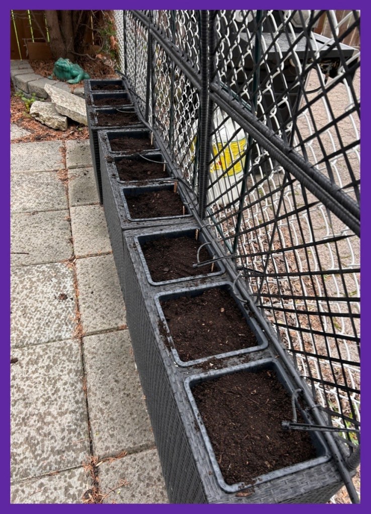 the cucumbers and tomatoes will go into the remaining pots around the end of the month… I have a few butternut squash seeds to put in as well…