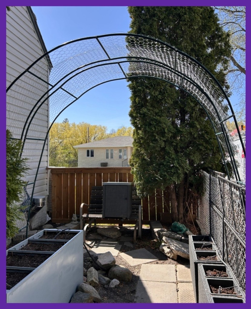 on May 9th, we found the chicken wire we’ve been looking for, to add to the arches in the side garden…