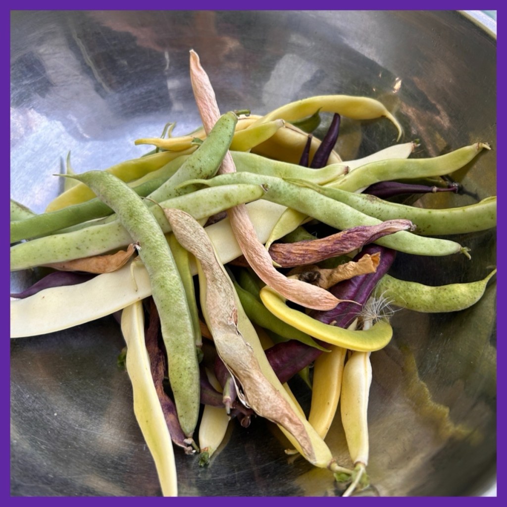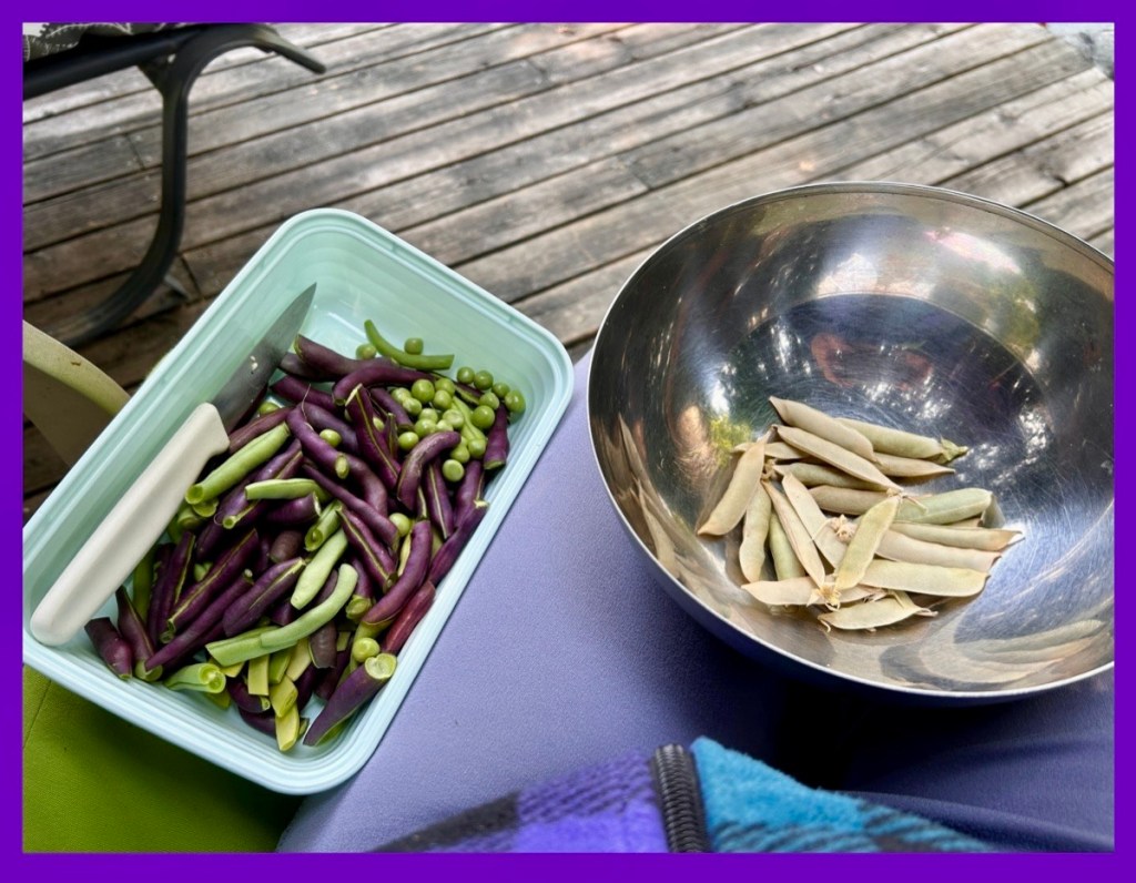 yesterday I picked purple and green beans, a few peas and a bunch of dried peas (looks like I missed a whole feed of them, sigh)…