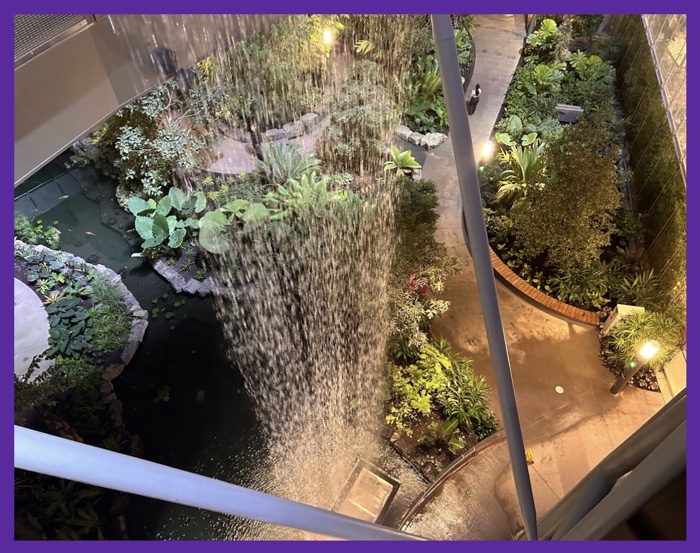 the waterfall is still spilling into the walkways, but it seemed at a lesser degree…