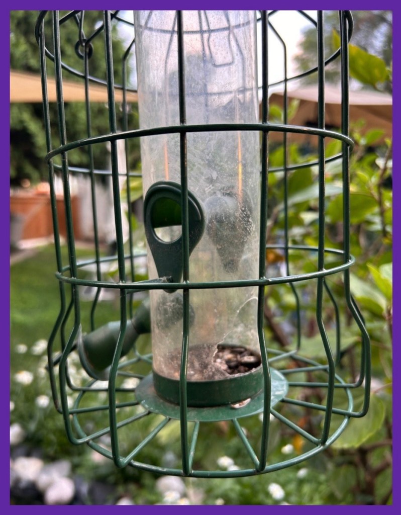 on Thursday I cleaned the poppy bird feeder and attached it to the front rail…