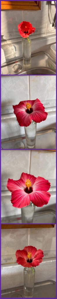 almost-open, big girl pants, blessed, bloom, blossom, flowers, food, hibiscus, mandevilla, moments, nature, plants, surprise, treat, widow