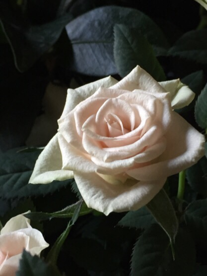 then I moved the mandevilla and mini roses to the dining room table, where the light shone on them nicely…