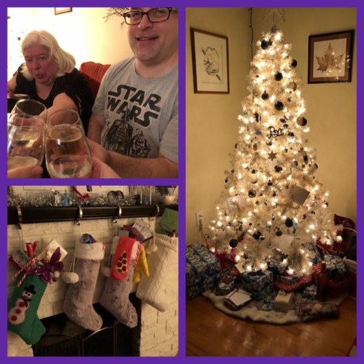 stockings were hung on the mantle and the tree looked ever so festive with lots of gifts under it…
