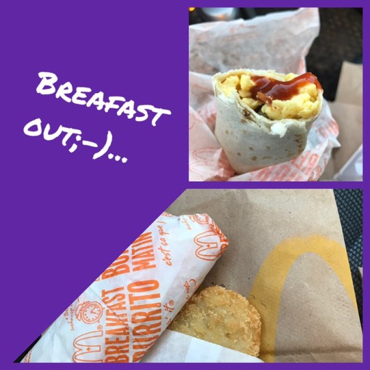 went in all on my own, ordered and then ate in the car… a lovely treat as I really enjoy their breakfast burrito and, of course, the hash browns…