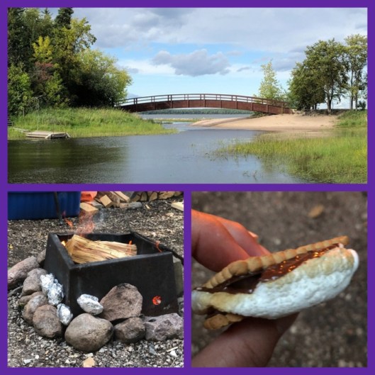 we baked potatoes around the fire, had steak and mushrooms to go with them, and then for dessert I had a delicious s’more… others may have had more than one, lol… the current method of making them involves using cookies covered in chocolate and then putting a roasted marshmallow between them… much simpler that graham crackers and a piece of chocolate bar…