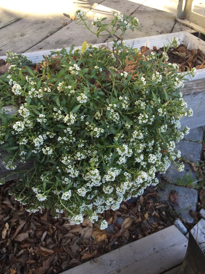 very hard to pull out the alyssum which was still happily blooming… excited to discover lots of morning glory seeds which I carefully packaged up to plant in the spring… hope I can find them then…