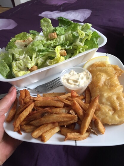 so tonight I treated myself to fish and chips… been craving them for a couple of weeks…