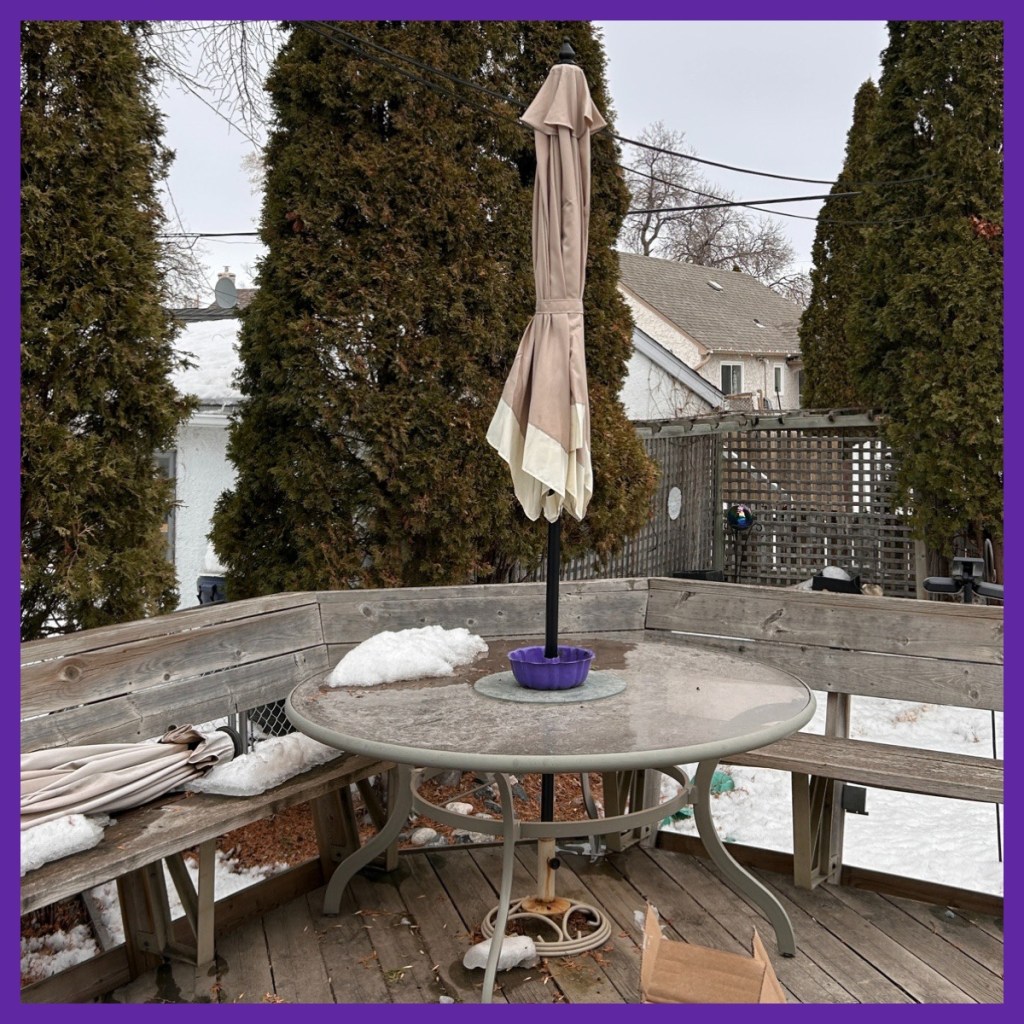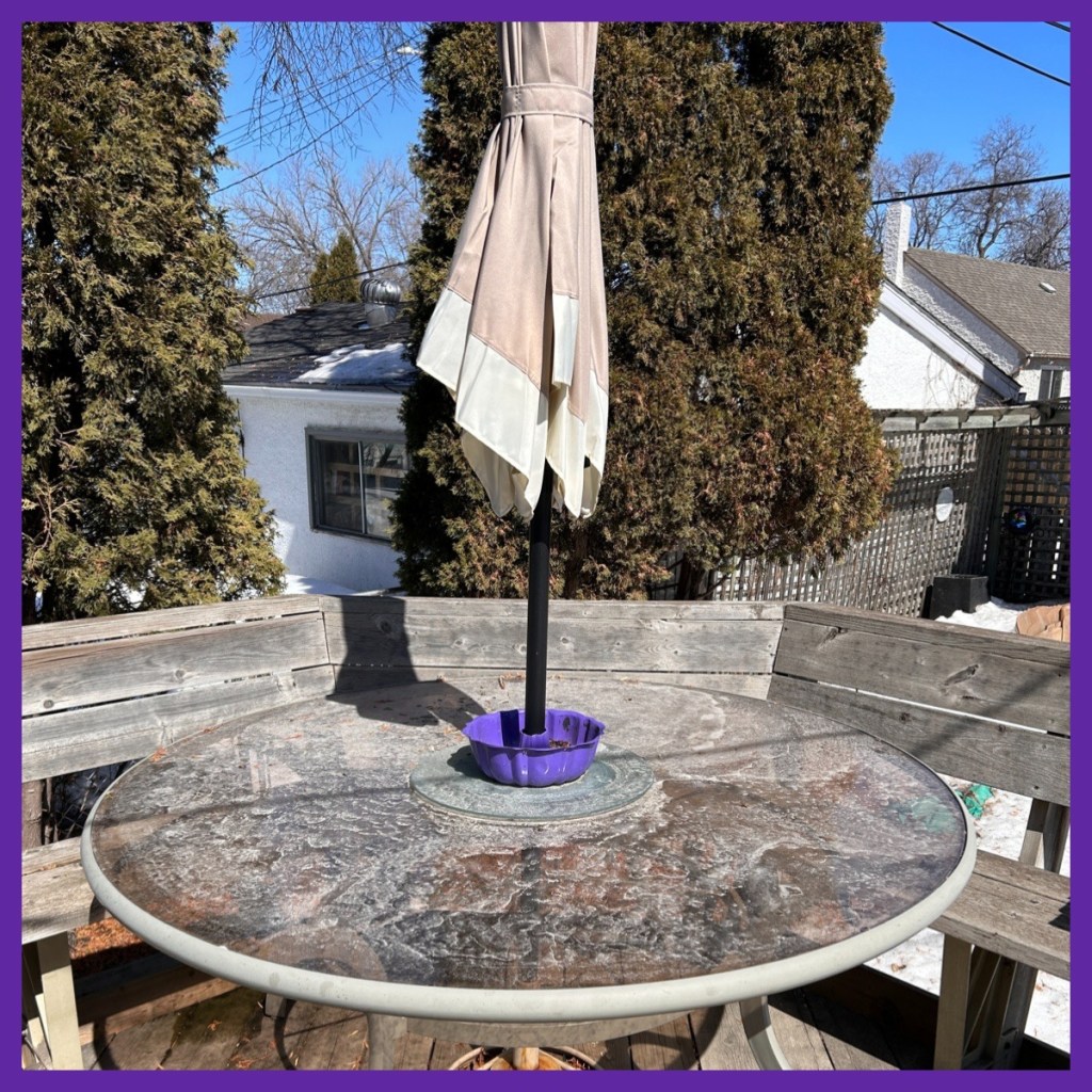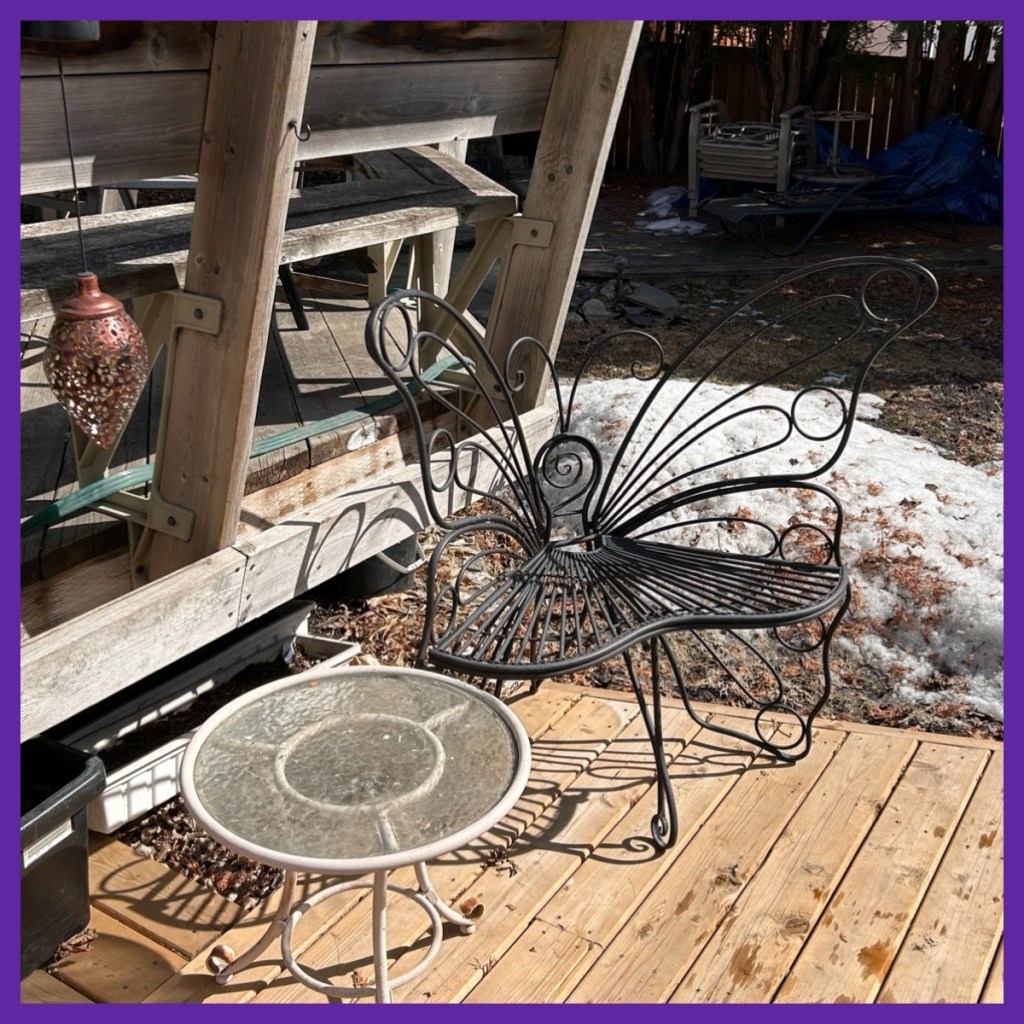 big girl pants, blessed, chairs, deck, friends, garden, gathering, moments, move, muscles, nature, shade, sun, umbrella, weather, widow