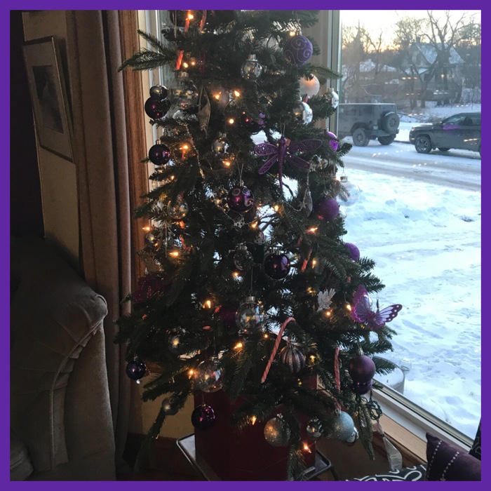 beloved, big girl pants, blessed, Christmas tree, decorated, family, lights, moments, ornaments, purple, restrung, widow