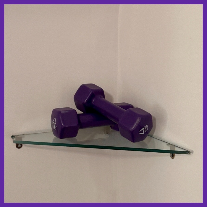 ran up, asking Google to turn on the bedroom light, and discovered that the glass shelf beside the closet had fallen to the ground… it and the weights that were sitting on it were fine😳…