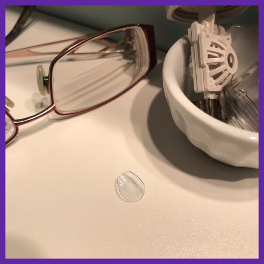 when I got home from work that night I discovered the contact sitting on the edge of the sink, all dried up… too funny…