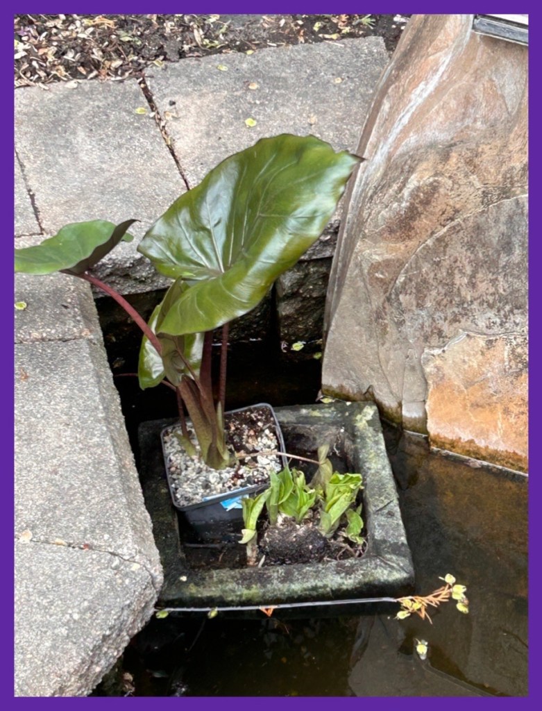 big girl pants, blessed, containers, elephant ear, finally, garden, moments, nature, papyrus, pond, thrive, water plants, weather, widow