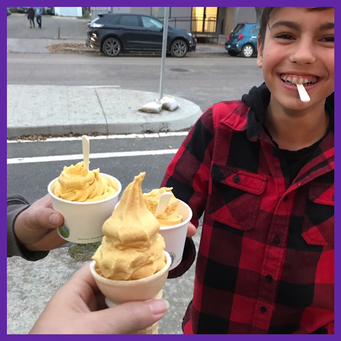 after supper we jumped in the car and drove to Boon Burger for some vegan pumpkin pie ice cream… my son-in-law is having to watch his dairy intake and was very excited to learn that they have this particular ice cream and that he could eat it…