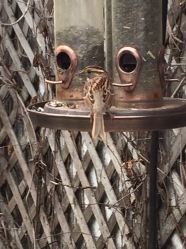 up early and had a hot tub… a red squirrel came to the feeder as well as this cute little sparrow…