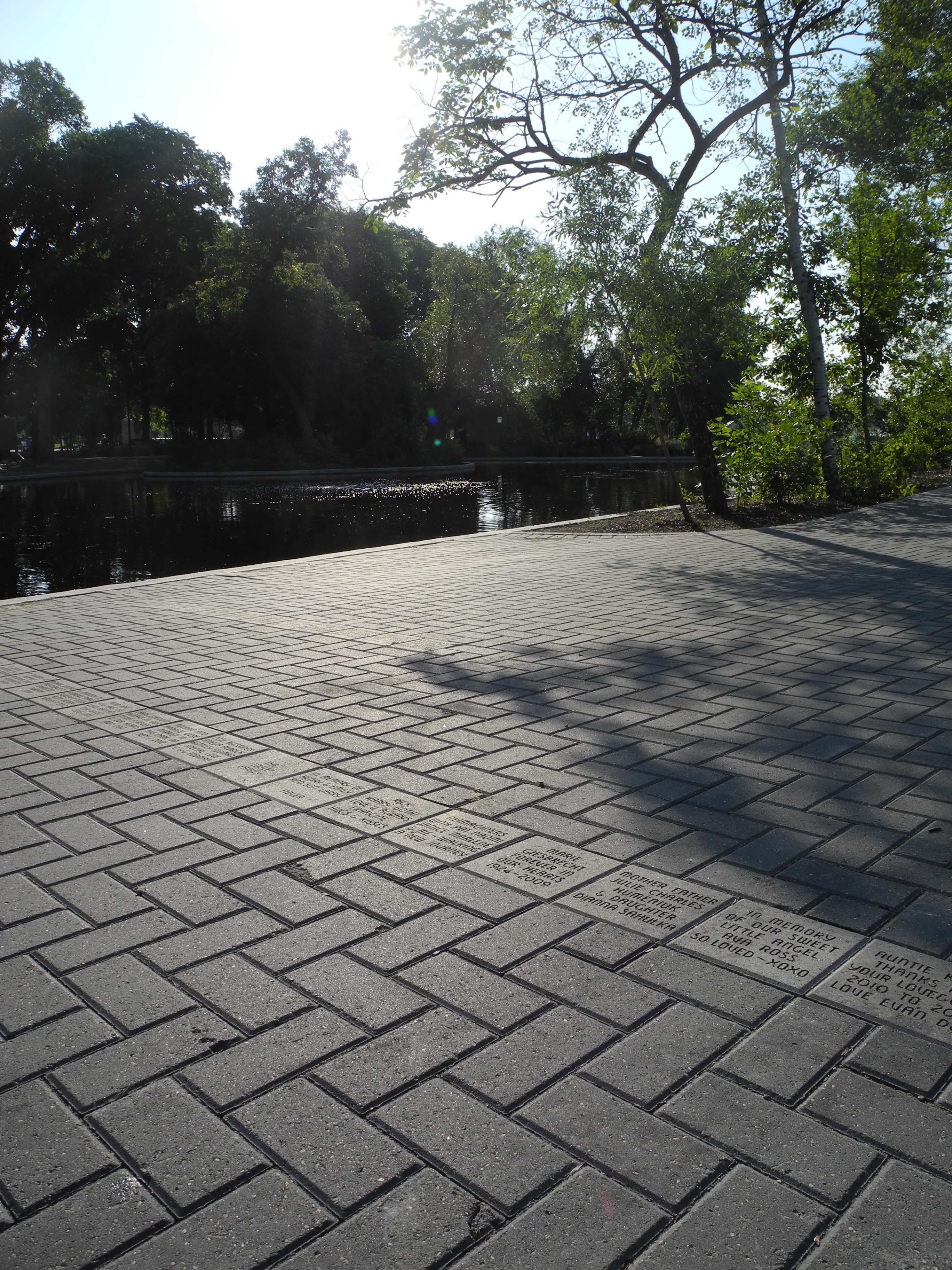 just recently I was thinking that I hadn’t heard anything about when the stone was being laid and the very next day I received an email confirming that it had been installed at the Park by the Duck Pond…