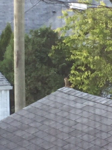 had to run and get my camera this morning when I saw these squirrels… one was running up a telephone pole and the other was standing at attention on the peak of the roof…