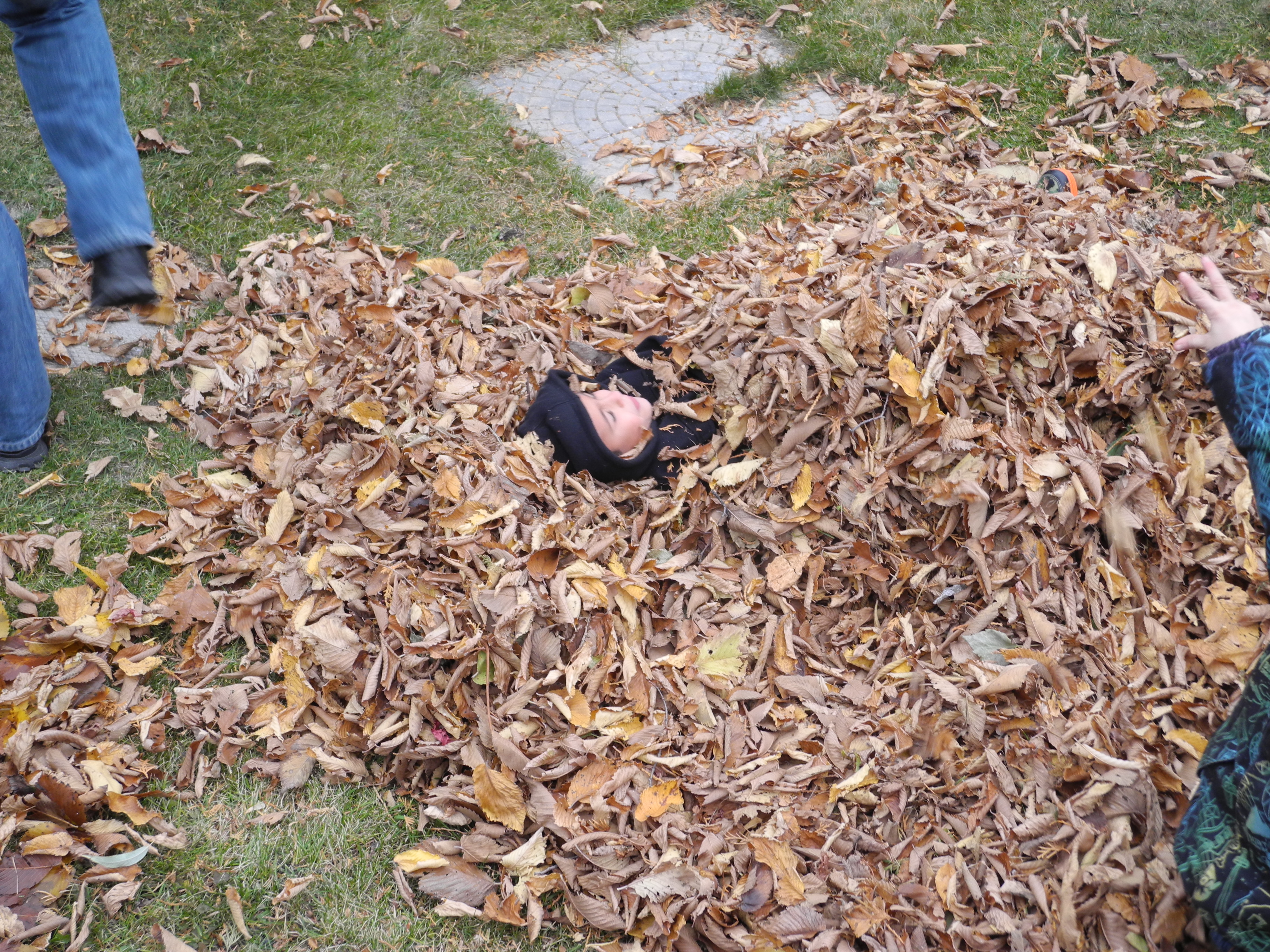 although it had been raked a while ago, there were tons of leaves… we don’t actually have any trees that drop leaves in the yard, but the neighbourhood elms do love to share their bounty with us at the end of the season…