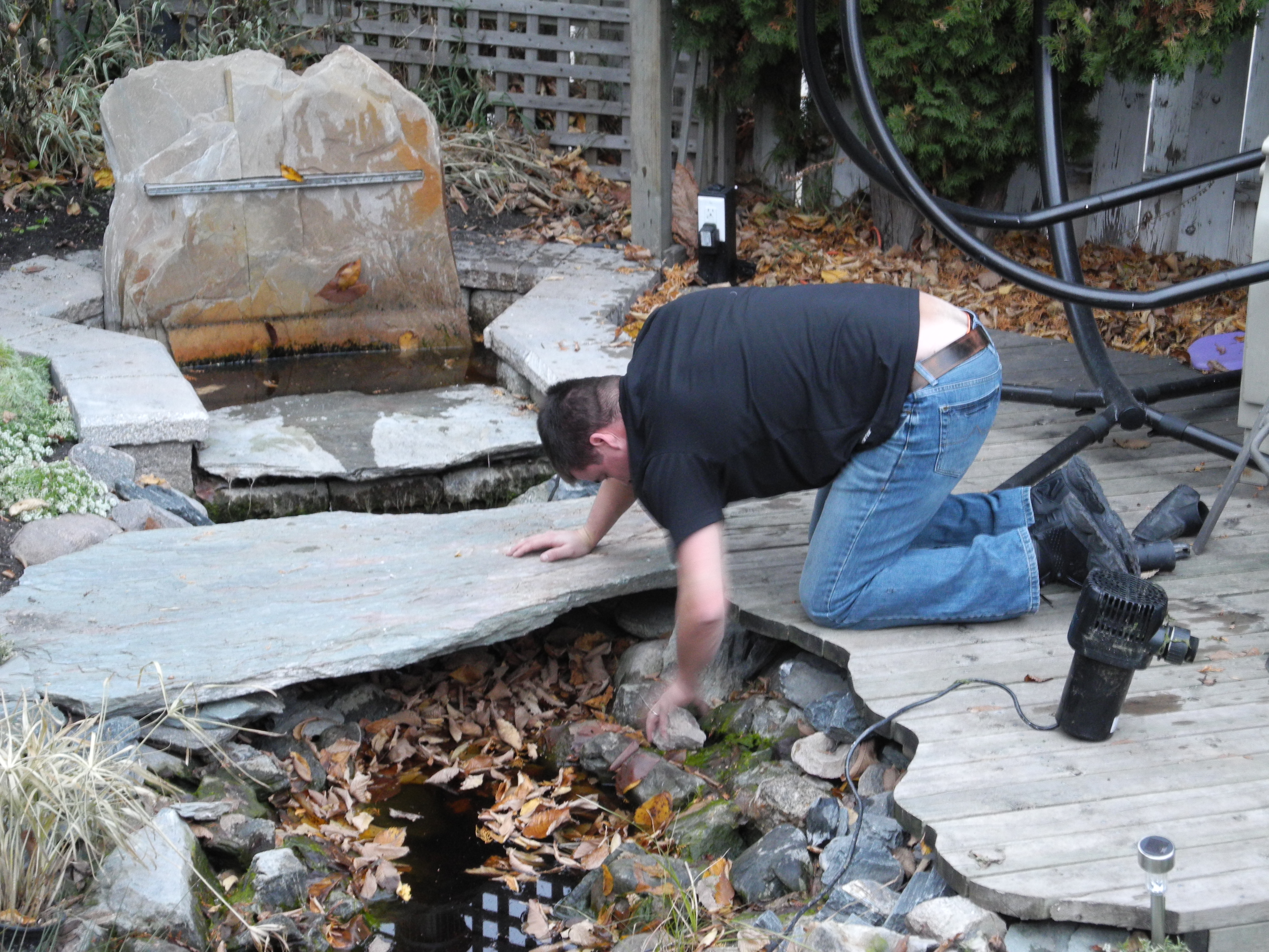 Jeff spent a fair bit of time working on the pond… getting leaves out of it with the net and then vacuuming around the edges to clean it up… he tried to find a way to remove the pump completely, but the cord is stuck under some rocks and we didn’t want to disturb them…