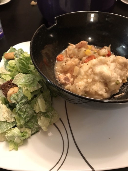 made dumplings to go with the soup, pulled together a Caesar salad and we had supper… George would have called this stoup… a cross between stew and soup…
