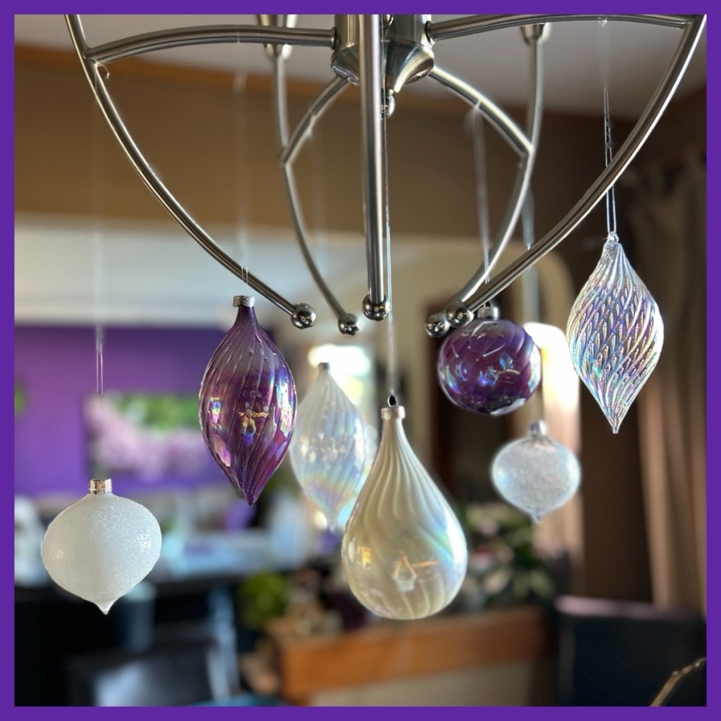 Wednesday, more ornaments were put up with the pottery and some of the most beautiful ones were hung on the dining room chandelier…