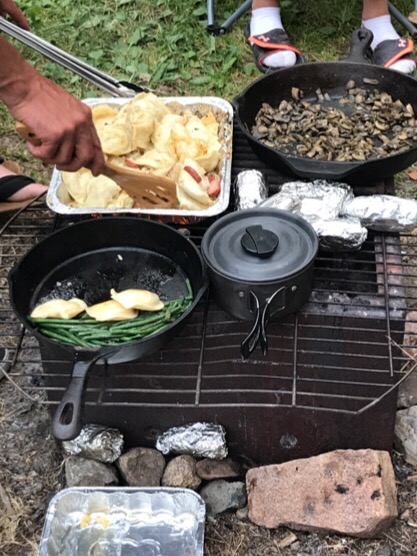rode back to the site in the boat on the trailer, which was kind of fun… ate our dinner around 10, as it was getting dark, and we are now heading to bed…