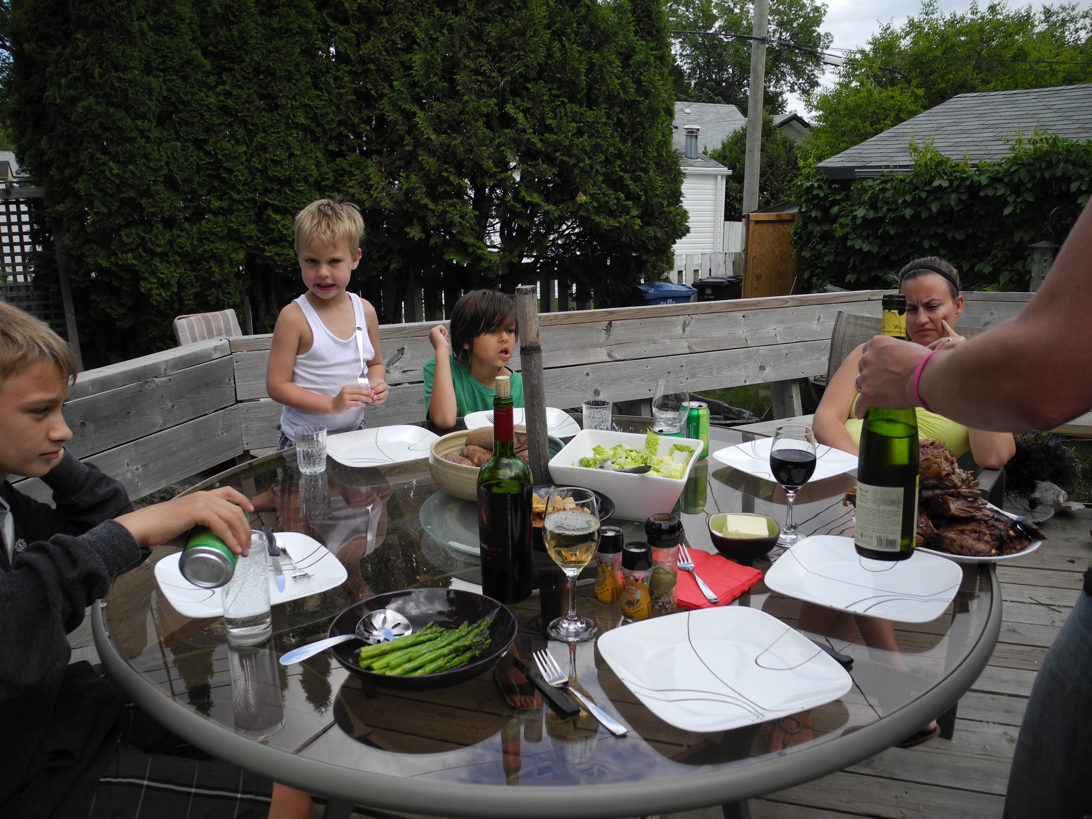 had a lovely dinner on the deck – ribs (thanks to Crystal for barbecuing them) and Caesar salad were the request so that’s what we had… then Jeff went out and mowed the front yard…