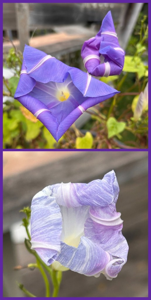 big girl pants, blessed, butterfly bench, flowers, garden, invasive, moments, morning glories, nature, plants, weather, widow