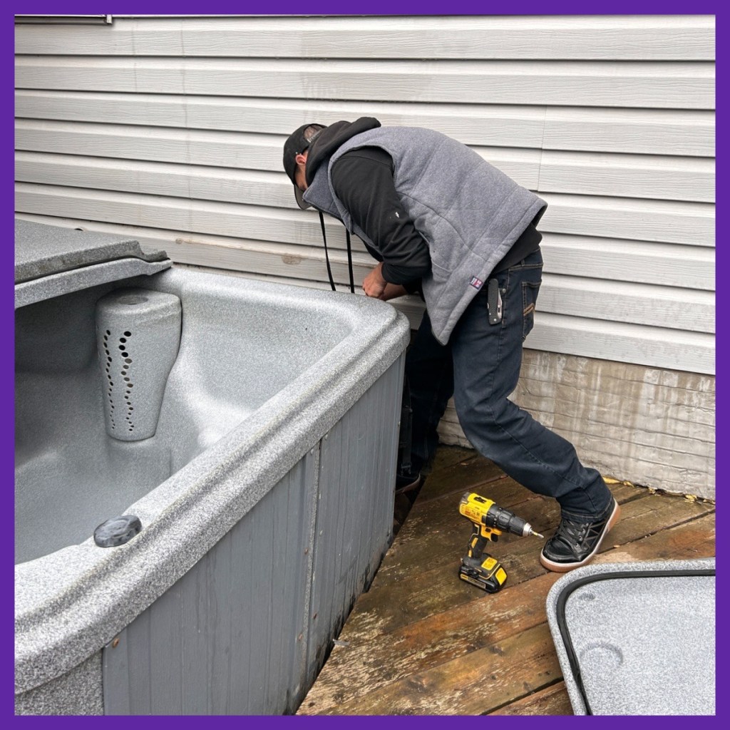 once my grandson got home in the evening we were able to get the hot tub back into the correct spot… sounds easy, but if it isn’t in just the correct place, the lids won’t open… but we got it into place and then it took an hour and a half to fill…
