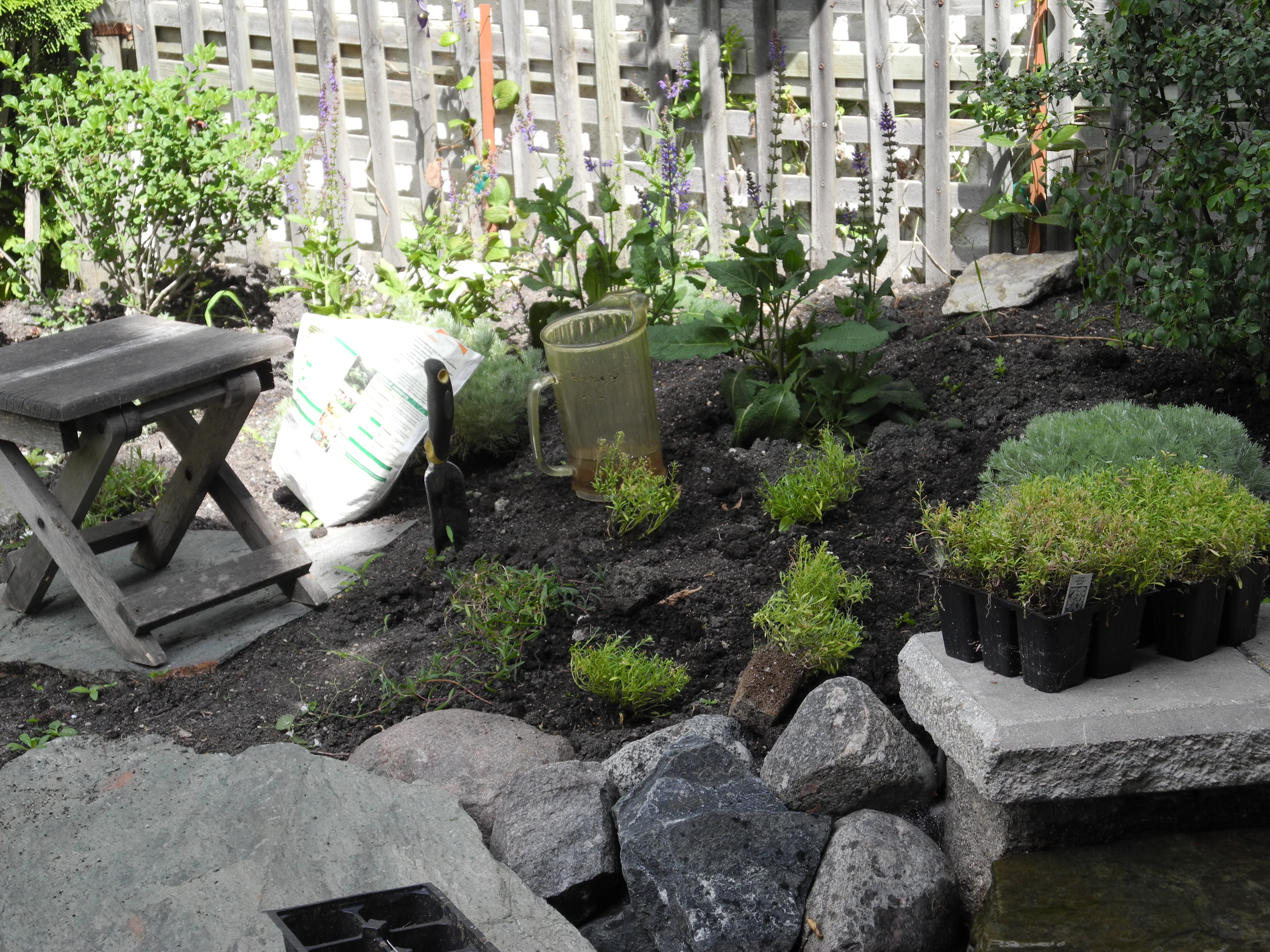 after tidying the deck I cleaned up the new flower beds and the raised bed…