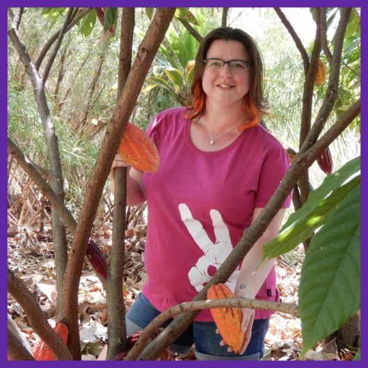 from there we headed over to Maui Chocolate and Coffee Tours at Kupa’a Farms where we had a wonderful visit with Ann and Janet and Gerry… we talked about jewellery and Instagram and then we got to see cacao trees… somebody was very happy…
