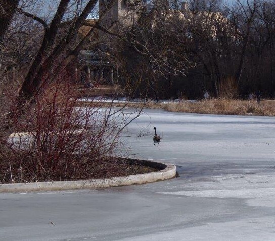 I came across a Canada goose on the path to the Leo Mol Garden and it wasn’t moving, no matter what I did… I could see another goose on the roof of the Leo Mol Gallery that seemed to be working on a nest… so, possibly its partner…
