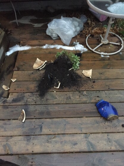 last week I’d brought in the planter from the top step so it could thaw out so all the dead plants could be pulled out…