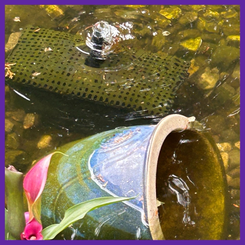brought up the second pump and after climbing into the bathtub pond, got it set in the correct spot so it wouldn’t send the water out of the pond… then it was turned on and that pond was topped up…