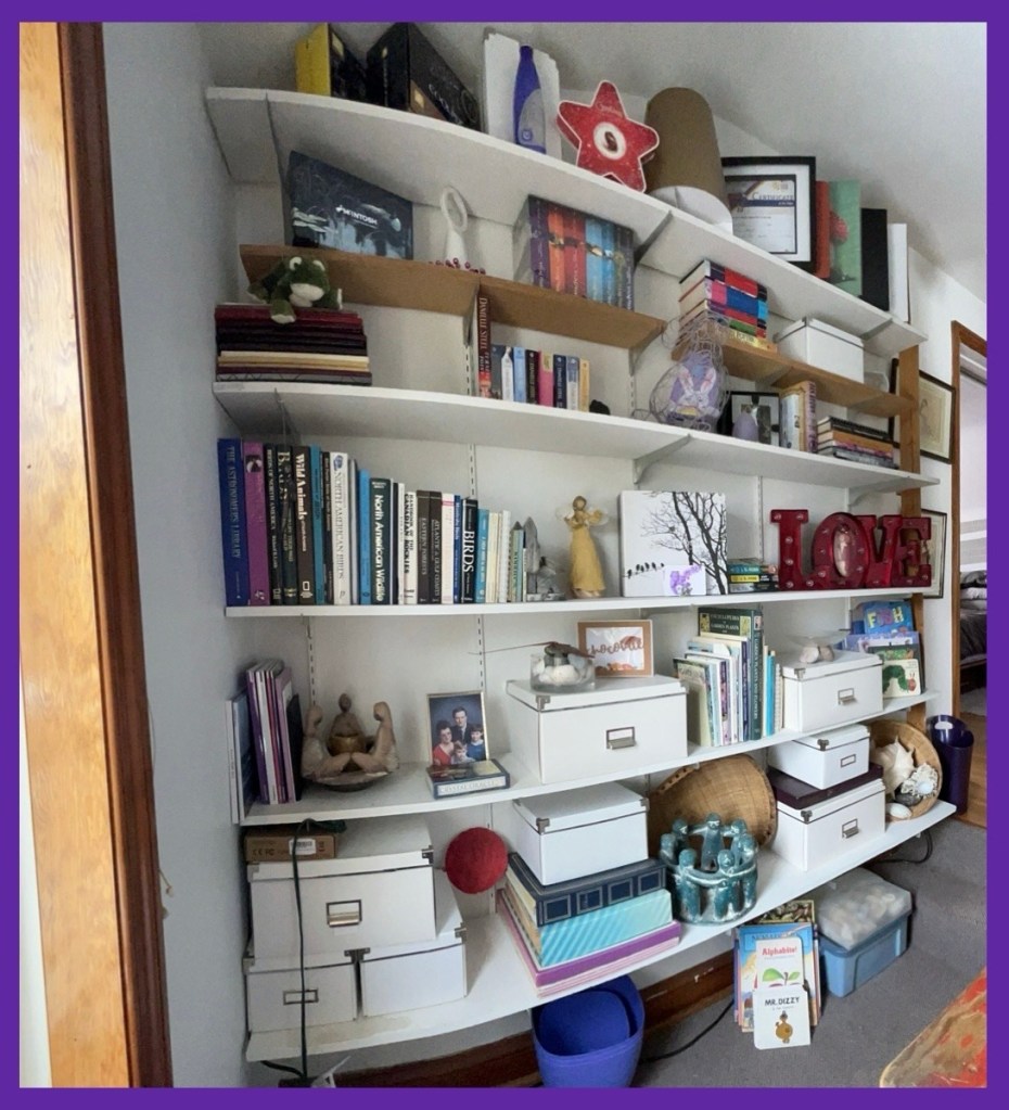 yesterday I had a good time cleaning and organizing the upstairs hall bookshelves… I had hoped to spend time on the deck, but it was overcast and cool so instead I tackled the shelves… apparently the last time may have been in February of 2014…