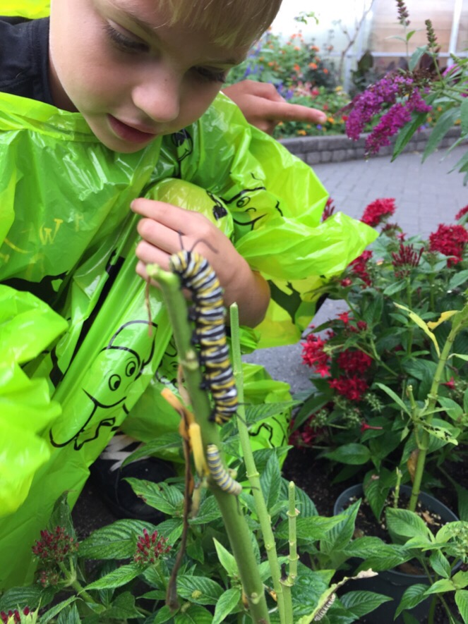 but finding lots of caterpillars… Mr. Eagle Eyes even spotted a chrysalis…