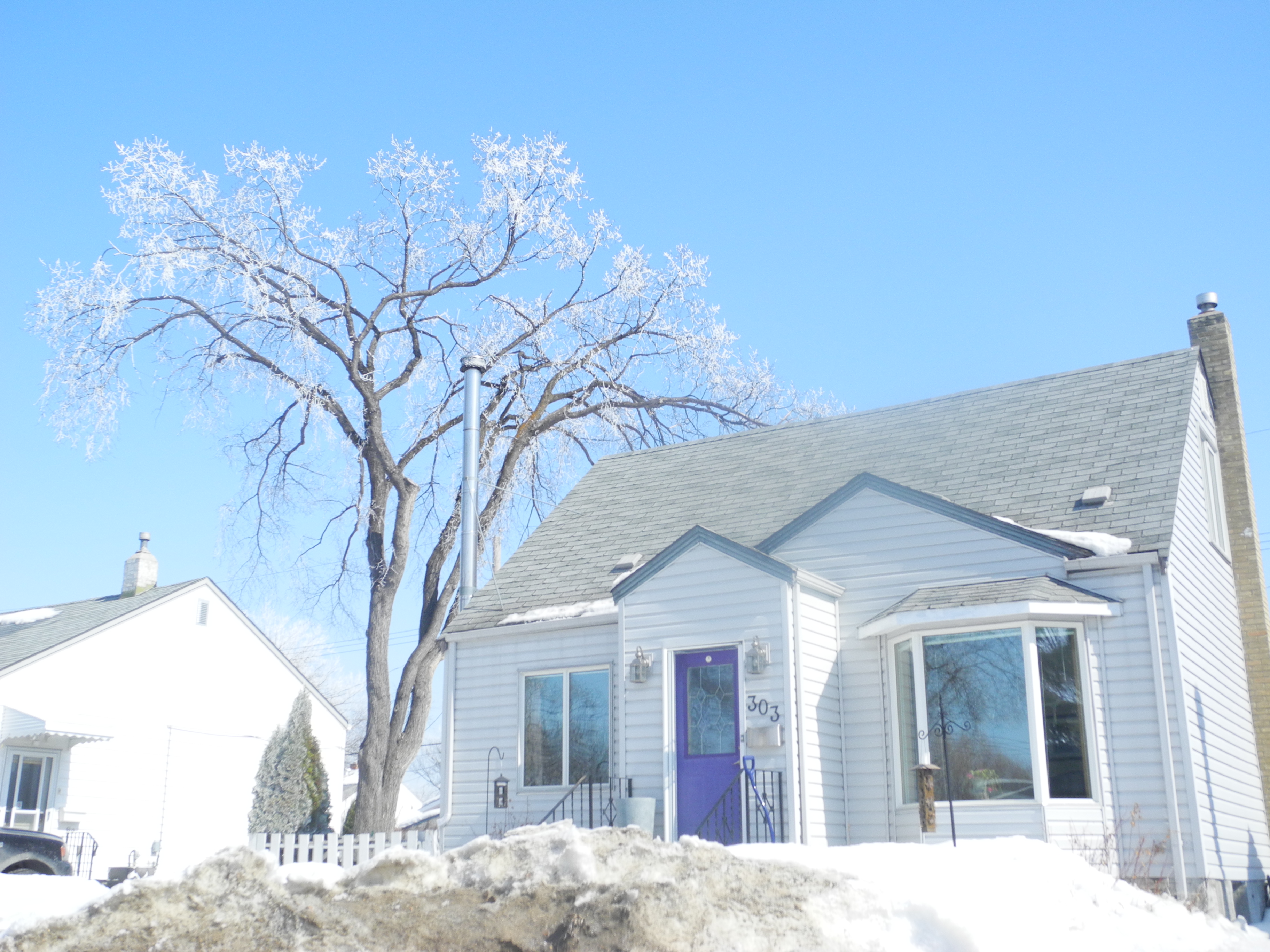 then I called and booked an appointment for a hair cut and purple and got in right away…  took my camera when I headed out because there was gorgeous hoarfrost on the trees…